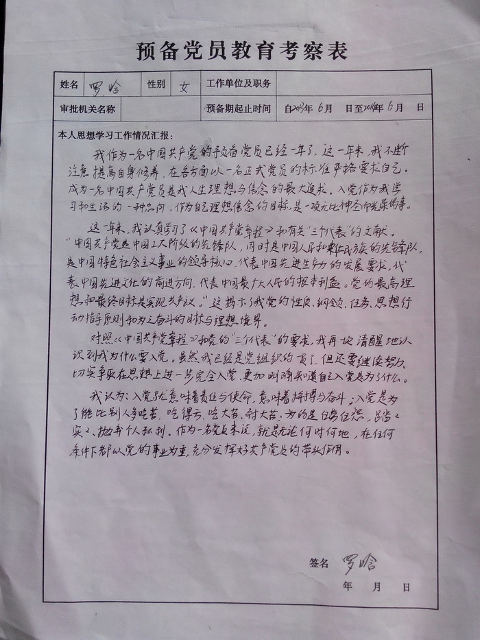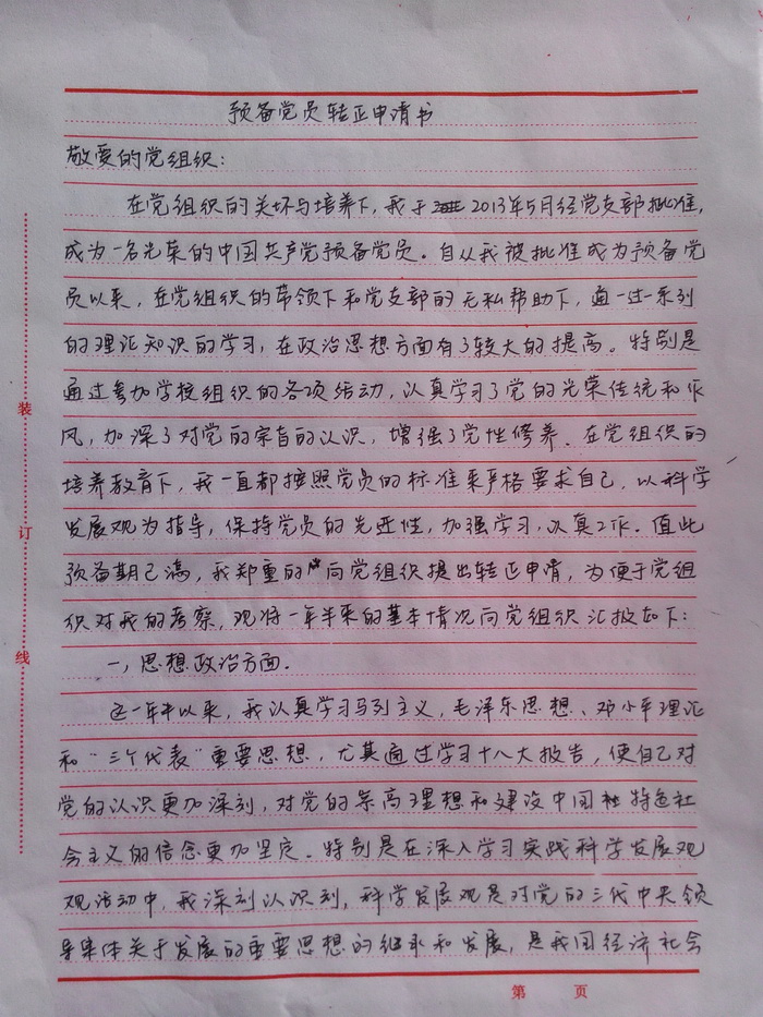 3、写好“预备党员转正申请书”。(附件三)