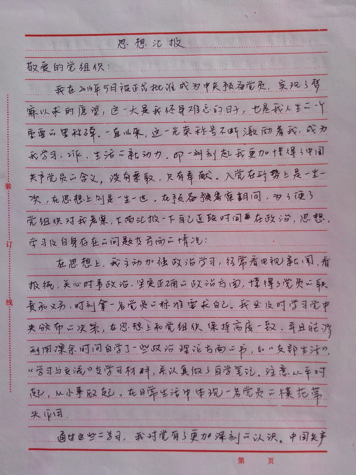4、写2份“思想汇报”(两千字以上)。(附件四)