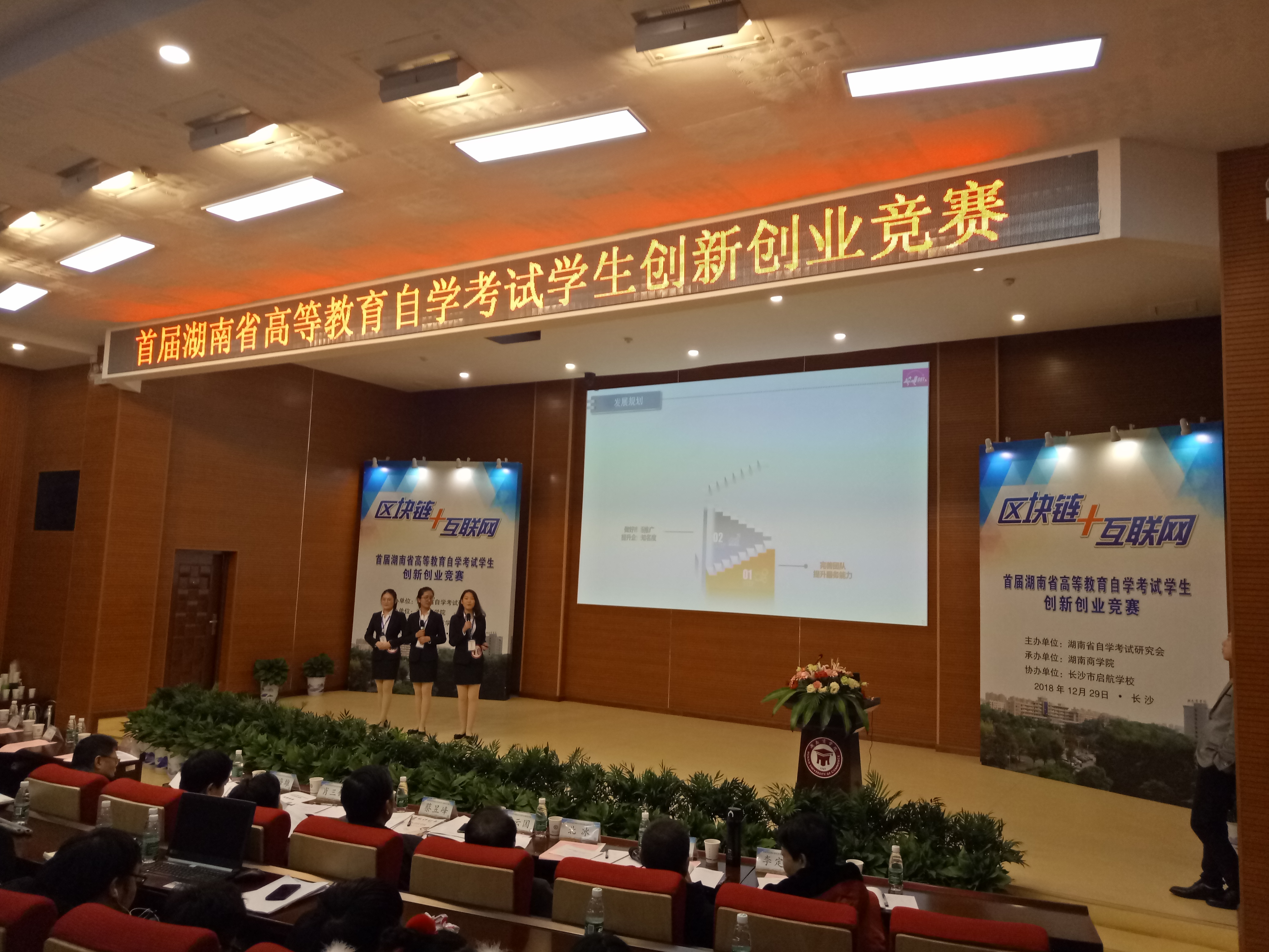 首届湖南省高等教育自学考试学生创新创业竞赛于2018年12月29日在湖南商学院圆满落幕。大赛采用预选赛、复赛、决赛三级赛制。在各市、州教育考试院、湖南省自学考试各主考院校继续教育学院预选赛基础上,按照组委会配额择优遴选项目进入复赛,根据复赛结果排名按预定比例选取队伍进入最后决赛。