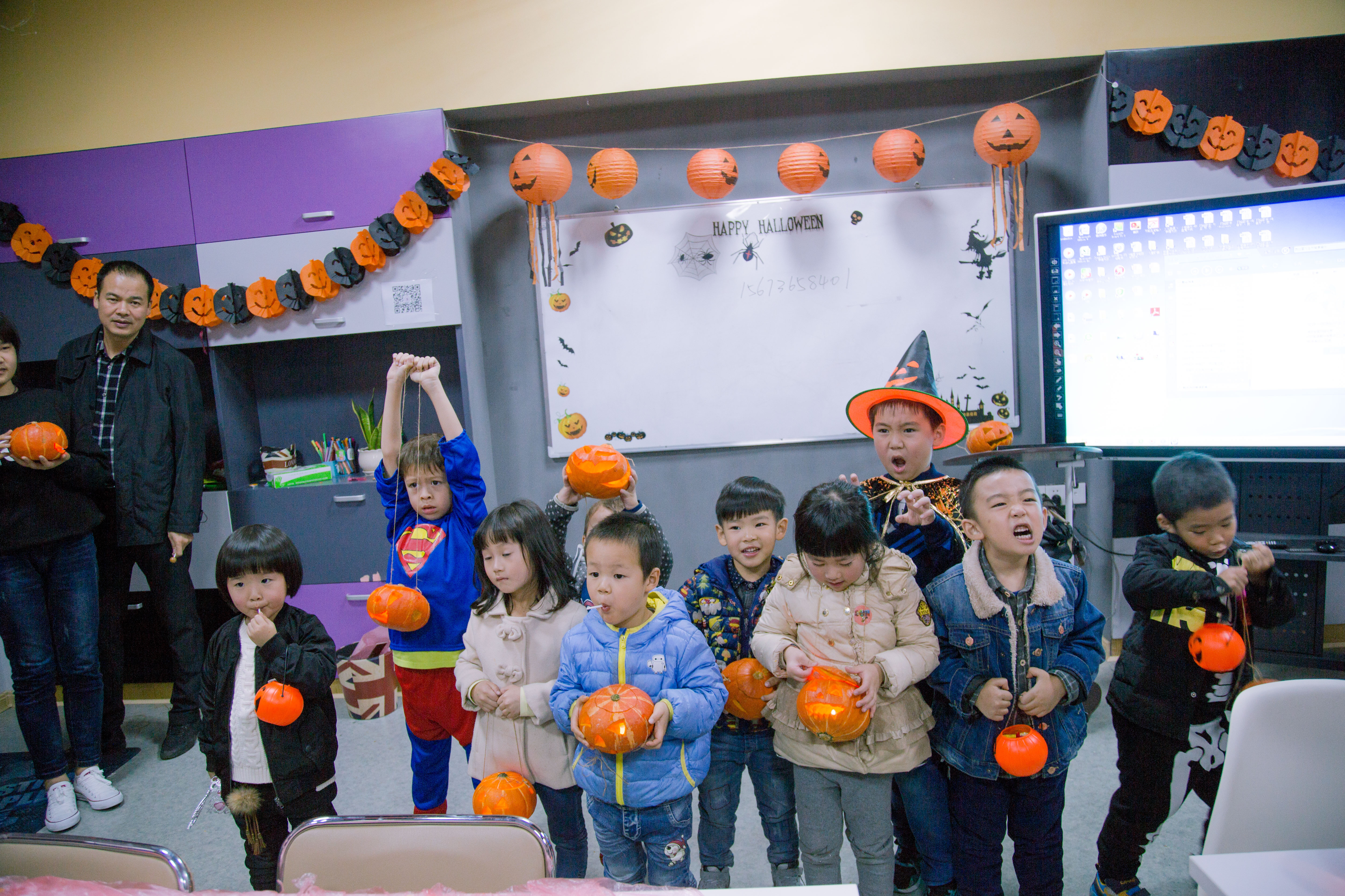 谁的南瓜灯最特别呢?你们可以找到自己做的南瓜灯吗?