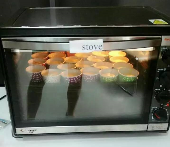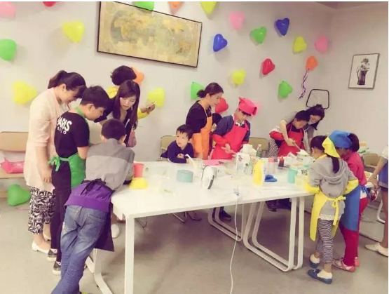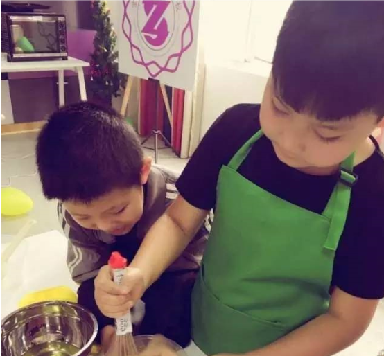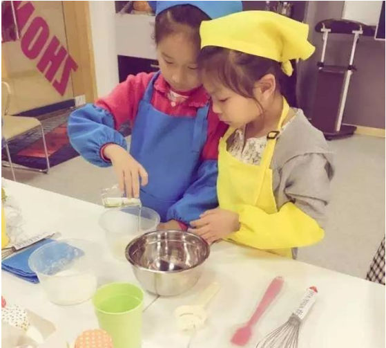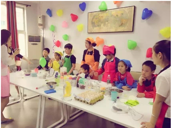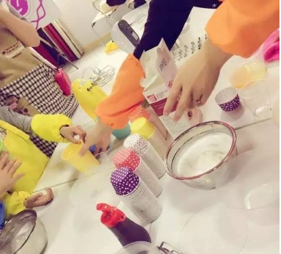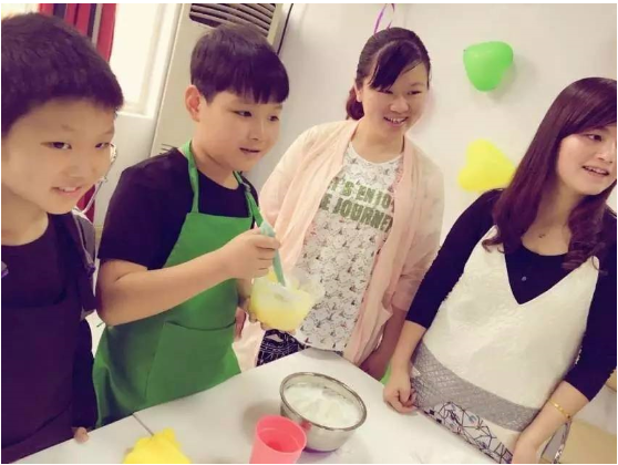 活动开始之前,贴心的老师早就将准备好的英语小词条贴在制作蛋糕的工具和材料上,这样小朋友们就可以一边跟老师学习各种材料工具的英文一边烘焙啦,在实践和玩耍中学习很让小朋友提起兴趣有木有! 这也是我们中山百分百少儿英语一直以来坚持的办学理念。