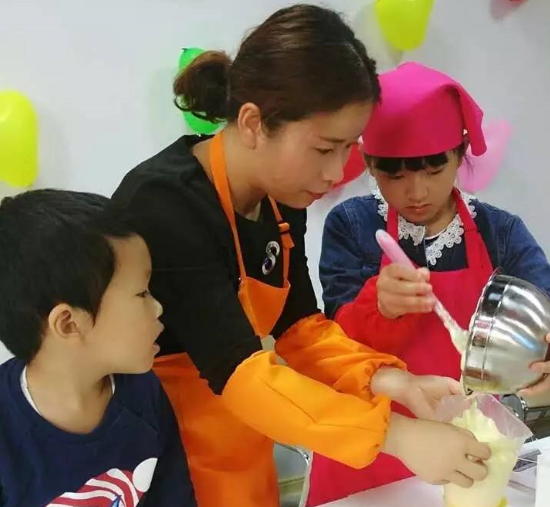 烘焙老师将所有小朋友和家长分成三个小组,每组分别是两个小朋友和两个家长,最后还会将每组制作的蛋糕进行比赛评选喔~