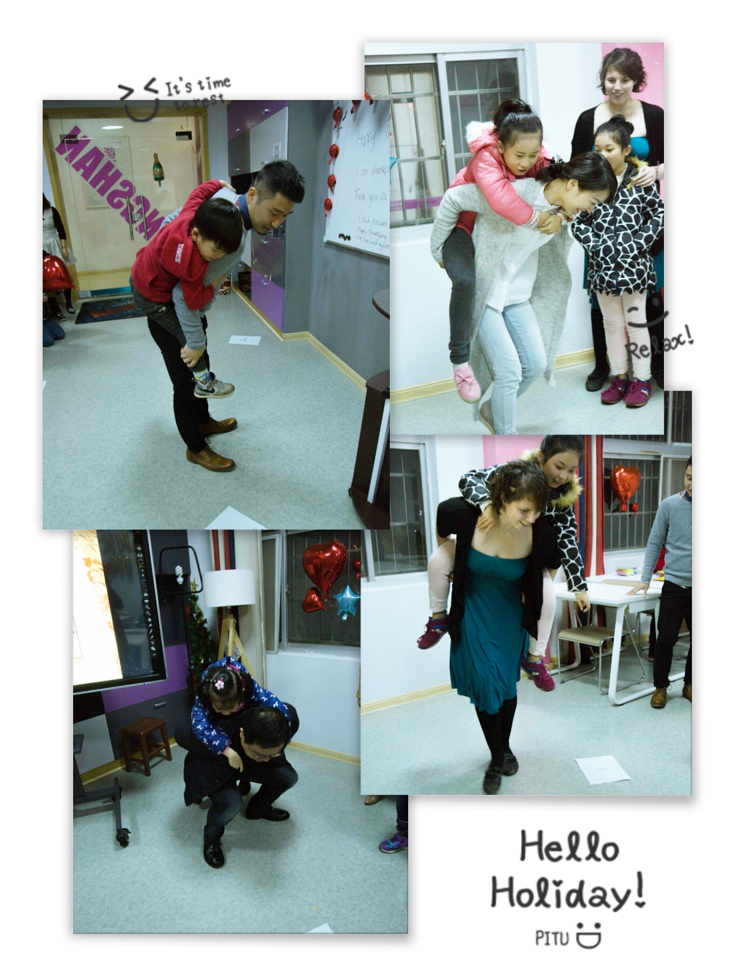 亲子互动游戏也是每次活动必不可少,让父母更了解孩子,也让孩子更亲近父母 ,这次的亲子活动游戏是家长背着自己的小孩猜单词,比比谁厉害~