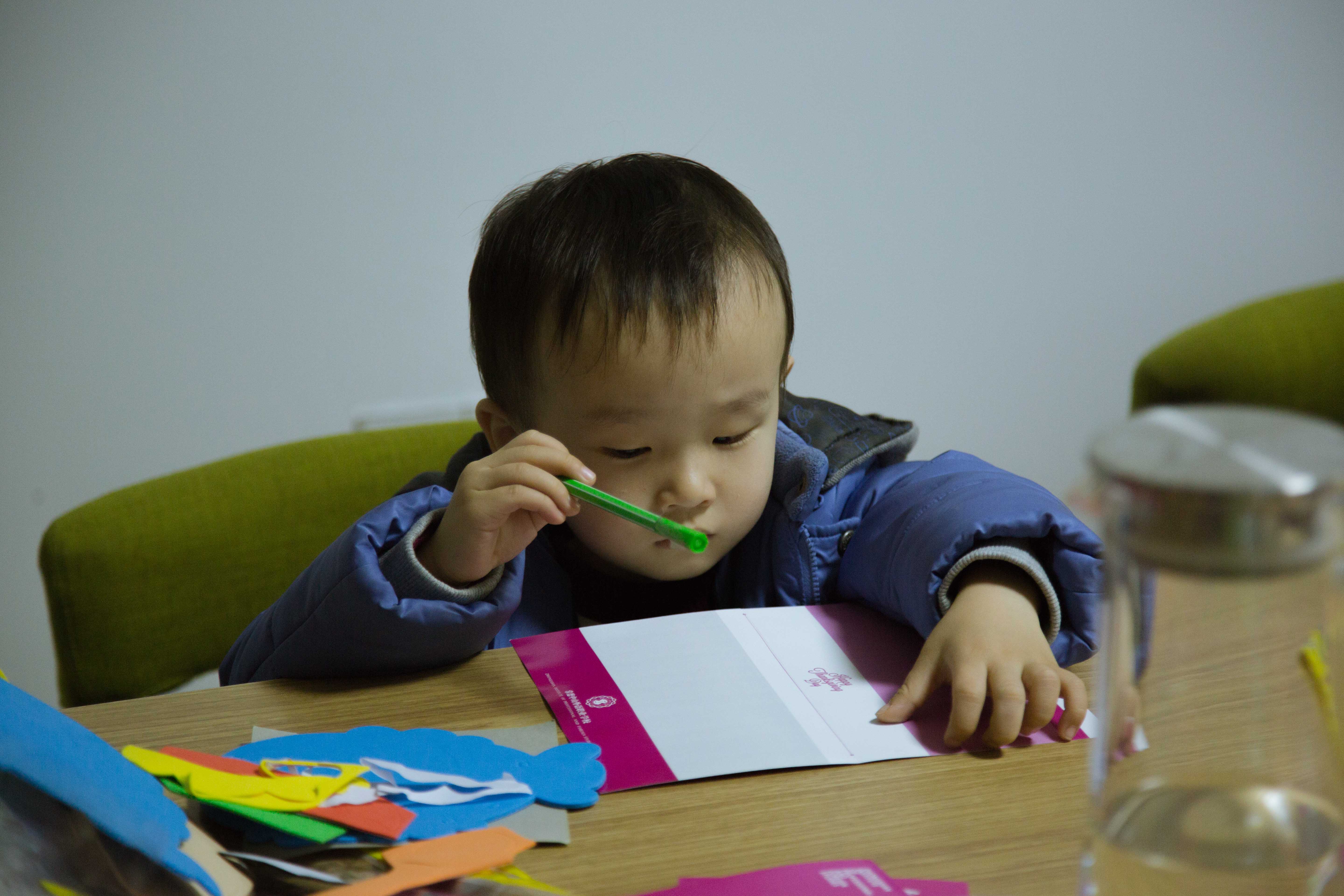 小朋友们在老师的带领下都自己动手为爸爸妈妈制作笔筒,写感恩卡。