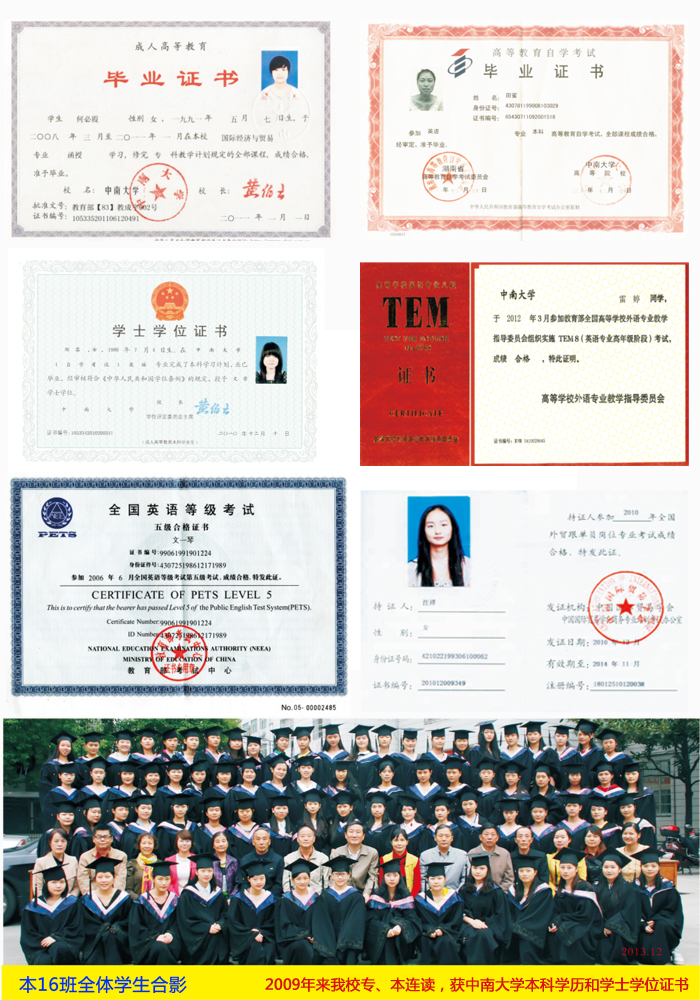 2、近几年,有500多名学生获得高等学校专业英语TEM-8证书。