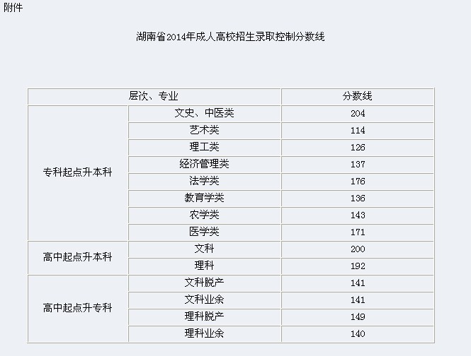 (转)我省2014年成人高校招生录取分数线确定