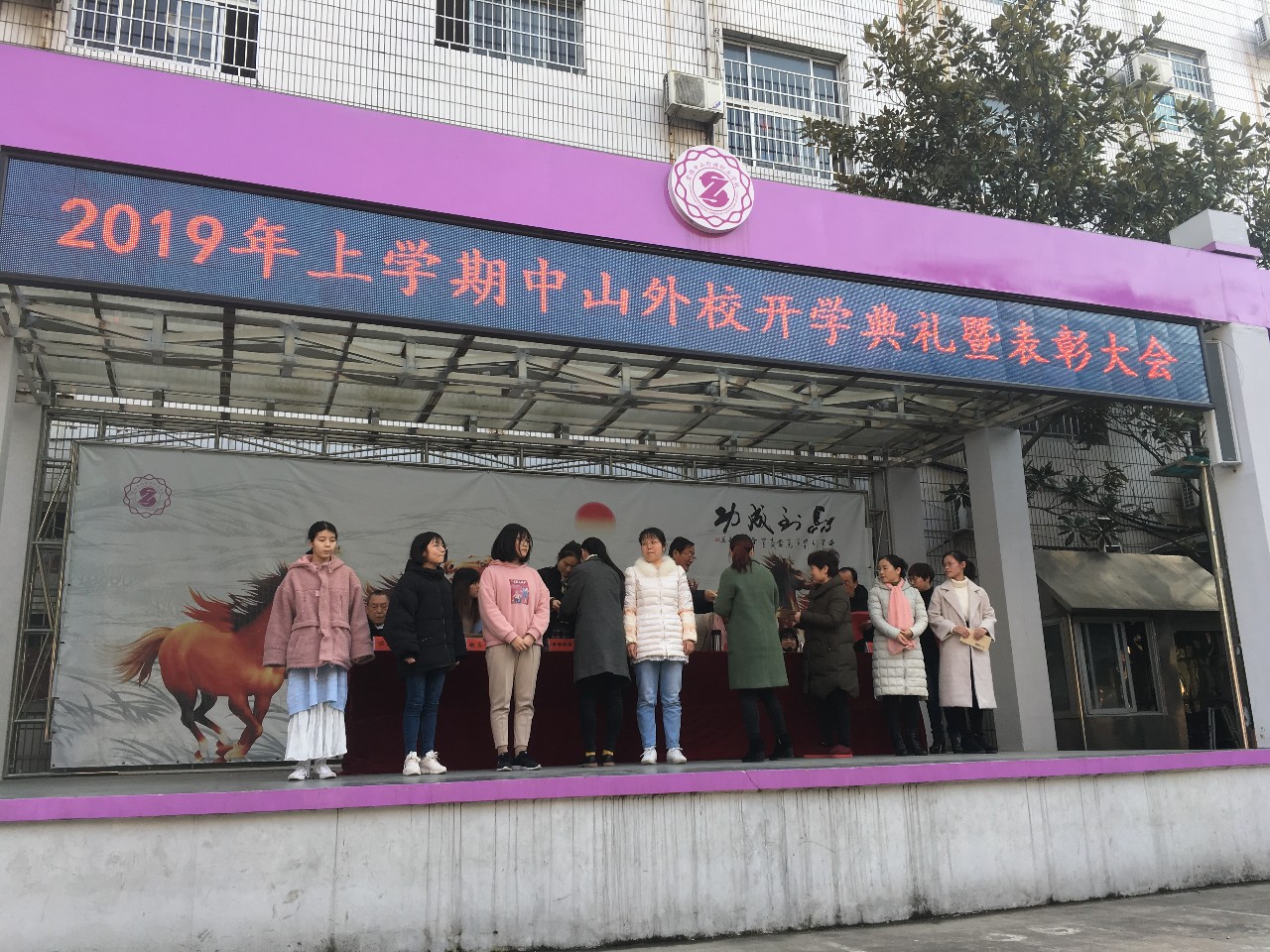 3月3日,春和日丽,勃勃生机,下午举行了2019年上学期开学典礼仪式。左平校长在工作报告中指出:安全重于泰山;质量就是生命;英语口语是资本;产教融合是出路;学校管理是根本。