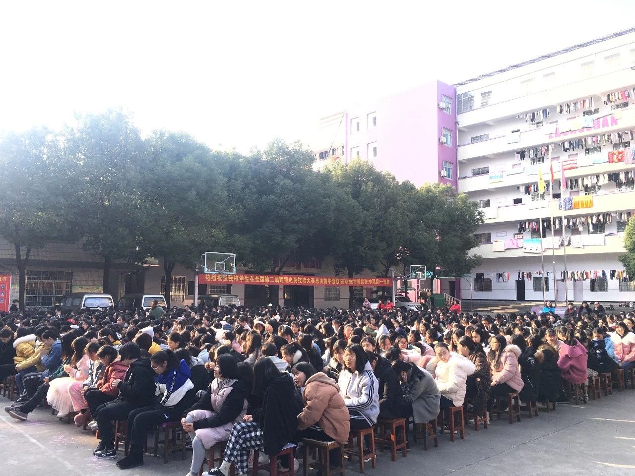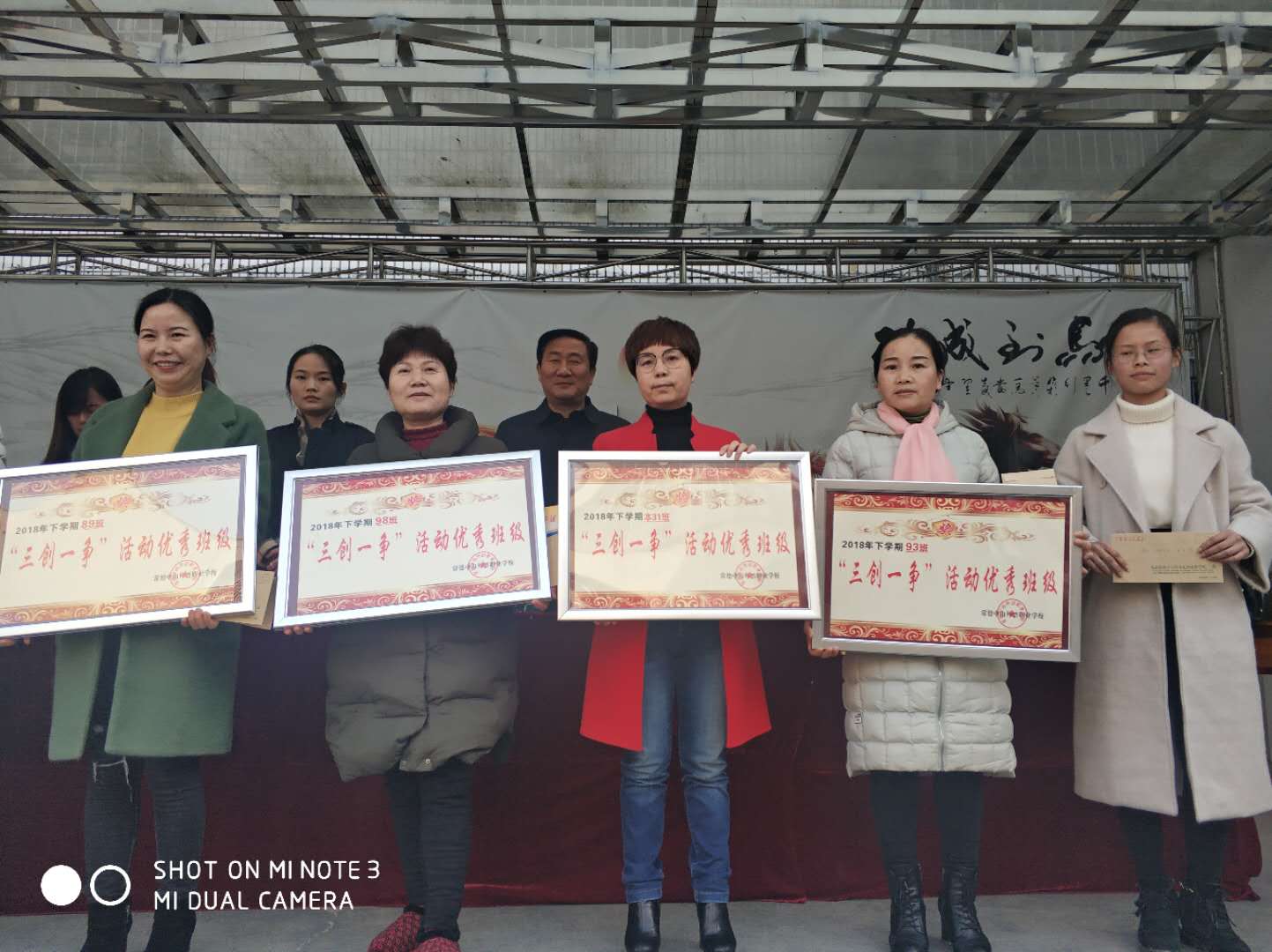 会上5个先进班集,30多人受到了表彰(省级、市级、校级)并颁发了奖金。三名学生代表发言。