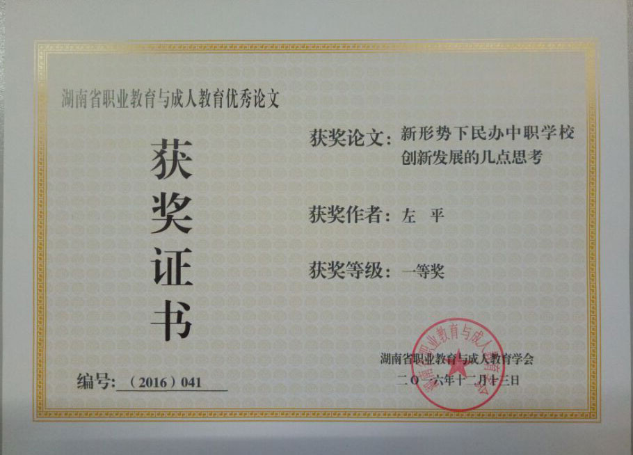 标题:左平校长“新形势下民办中职学校创新发展的几点思考”获省教育学会一等奖