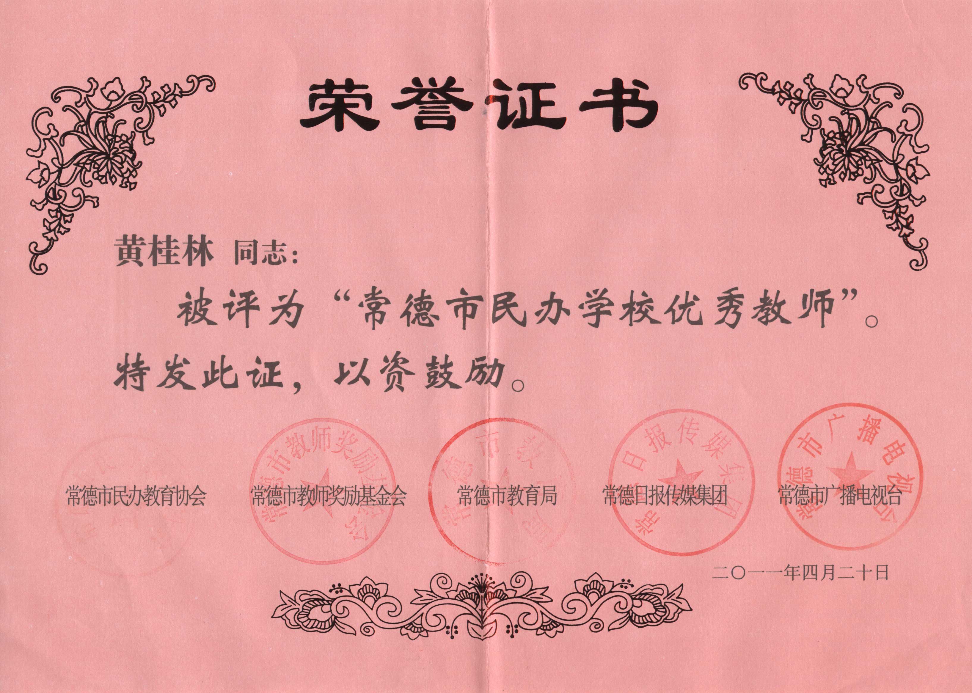 标题:我校黄桂林老师被评为市民办学校优秀教师