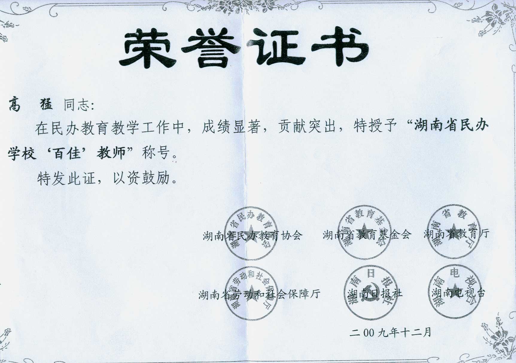 标题:我院高猛老师荣获湖南省民办学校百佳教师称号