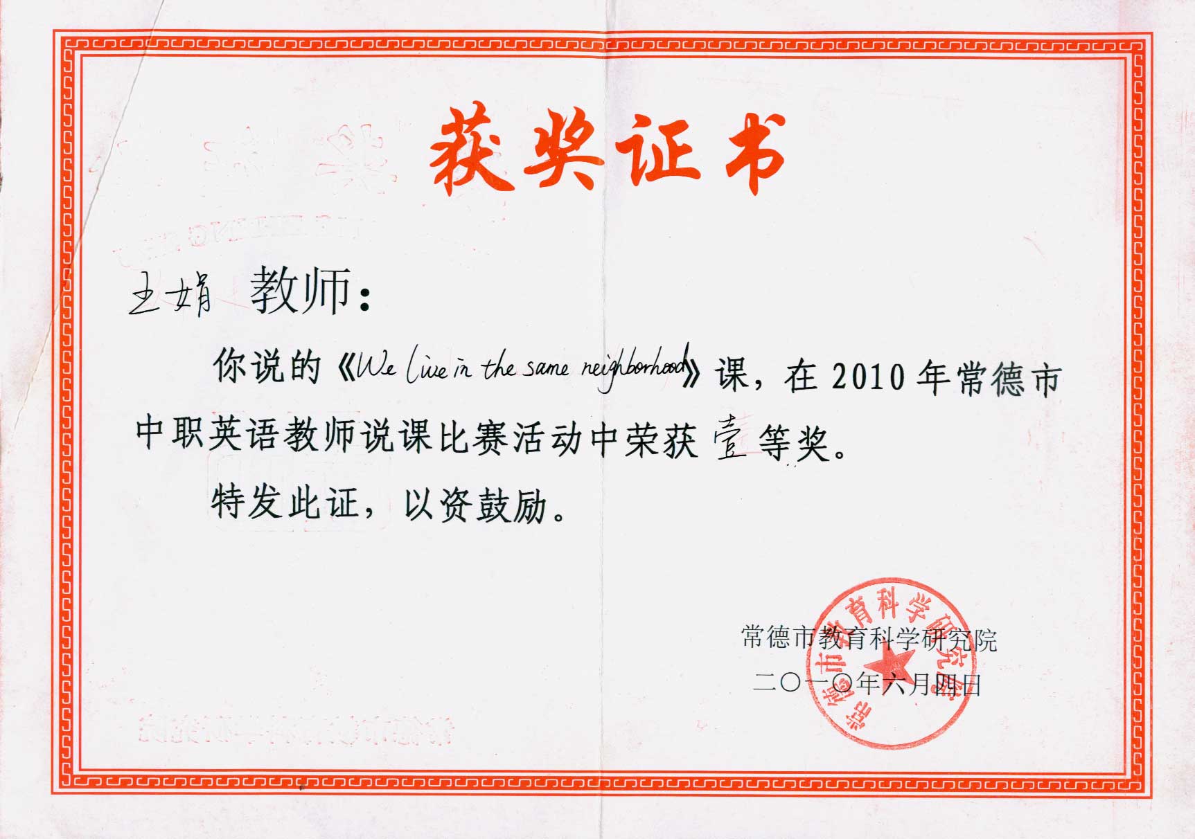 标题:我校王娟老师获市英语教师说课比赛一等奖